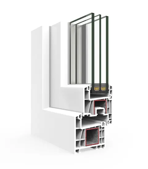 Os seus perfis de 5 câmaras, tanto no aro fixo como no móvel, conferem-lhe uma grande eficiência energética com valores de transmissão desde 0.9 W/m²K, que a convertem na série ideal para garantir o cumprimento das normas mais exigentes aplicáveis a qualquer zona climática.