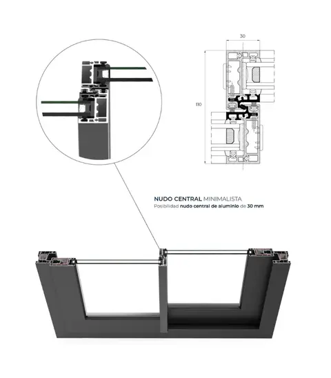 Sistema de janela e sacada de correr com 70 mm de profundidade no aro fixo e uma capacidade máxima para envidraçados de 26 mm.