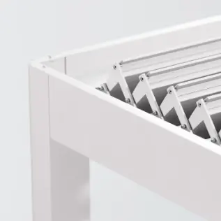 Os sistemas de pérgola bioclimática, também conhecidos como telhado rolante, telhado retrátil, terraço rolante ou terraço dobrável, são projetados para aprimorar sua experiência ao ar livre da maneira mais agradável. Ideal para uso em qualquer ambiente, este sistema oferece três opções diferentes de bioclima: totalmente fechado, modo de ventilação, totalmente aberto. Nosso design exclusivo "uni-beam" permite que vários módulos se conectem perfeitamente com estrutura mínima de coluna e viga. Aproveite o movimento sincronizado, com todos os painéis de lâmina conectados usando cortadores especiais de liga de alumínio.