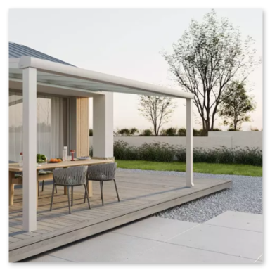 O sistema de cobertura apresentam quatro tipos de teto: simples, duplo, painel sanduíche e painel de policarbonato, todos com os mesmos perfis para máxima flexibilidade. Projetados para facilidade de uso e estética, esses sistemas priorizam a facilidade de uso, incluindo resistência à carga de neve, perfis de reforço, drenagem com recursos de suporte de folhas. A iluminação ambiente LED personalizável integrada aumenta o apelo visual. Você pode usar a Veranda Premium como um telhado fixo ou fechá-la com sistemas de cobertura varanda premium.