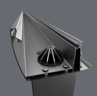 É fechado com uma tampa especial para uma aparência estética na junção das seções.